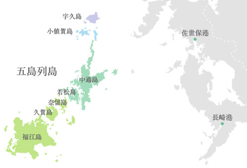 五島列島は日本の西の果ての地、祈りの島と呼ばれる奈留島は、列島の真ん中に位置します。